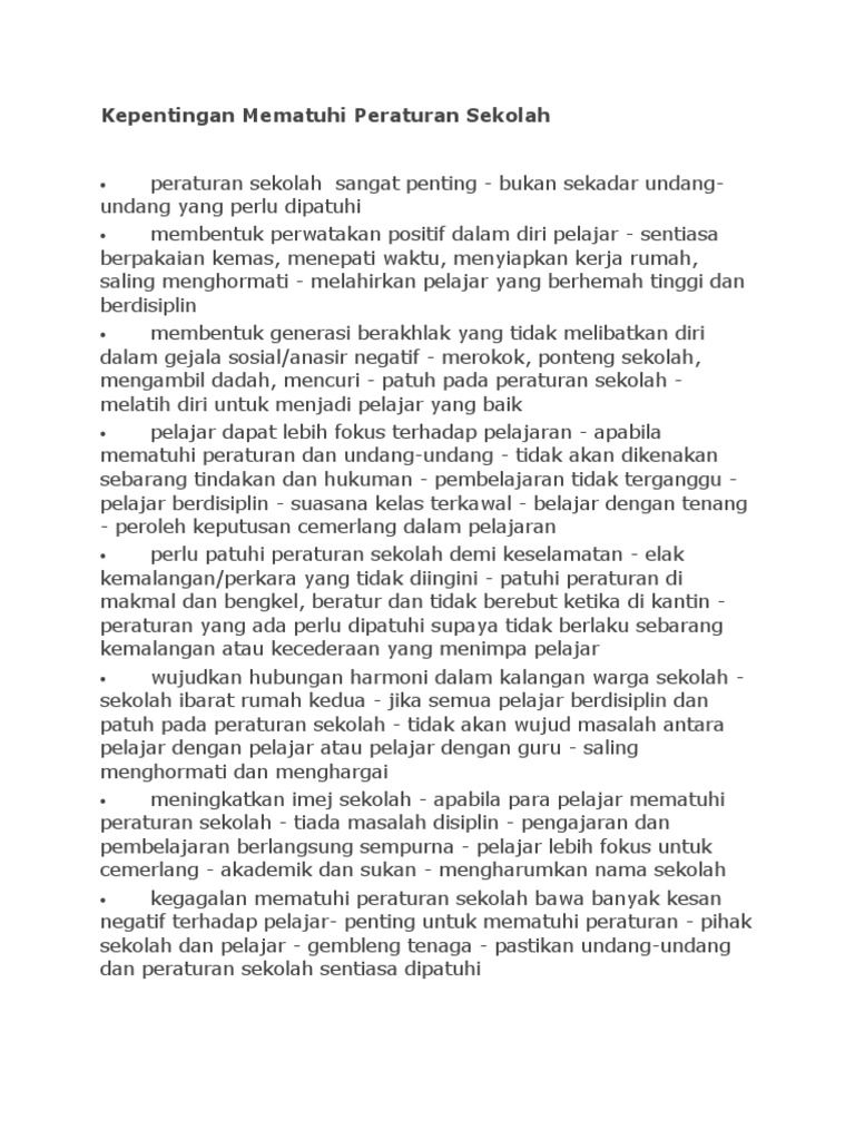 Kepentingan Patuh Peraturan Sekolah Pdf